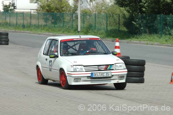 20.08.2006 - Fischereihafen-Sprint Bremerhaven Björn Riesmeyer und ich waren am letzten Sonntag bei den beiden Rallyesprints in Bremerhaven am Start. Björn fuhr, ich nahm auf dem Beifahrersitz des weißen Peugeot 205 Platz. Wir hatten viel Spaß und konnten in der sehr gut besetzten Klasse besser abschneiden als erwartet. Bei der Vormittagsveranstaltung im Trockenen belegten wir Platz 9 unter 13 Startern. Das Ergebnis war für uns ok, wir waren zufrieden. Nachmittags regnete es zeitweise, was Björns Fronttriebler-Peugeot gut schmeckte. Björn - in Topform - trat den armen kleinen 205 erbarmungslos, während ich über meine Lebensversicherungen nachdachte ... . Der Einsatz wurde belohnt. Am Ende gab es Platz 6 bei 15 Startern in der Klasse G3 / G18. Gut gemacht, Björn. Vielen Dank an den Veranstalter und an alle Helfer, die für uns bestimmt so manches mal bis auf die Knochen naß wurden. Danke auch an Rallyefilmer Helmut für das tolle Video sowie im voraus auch an die Fotografen Kai und Peter.