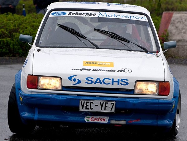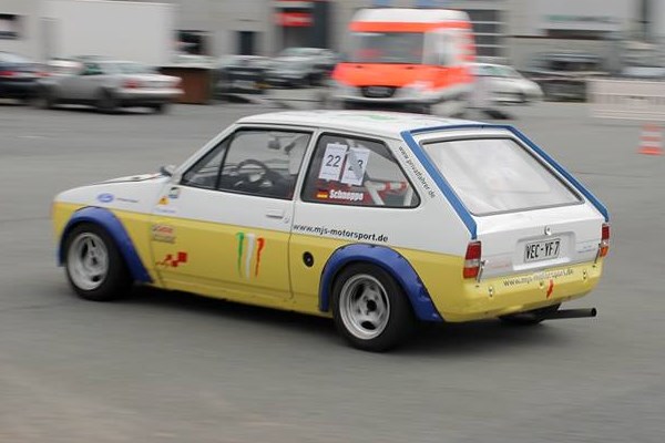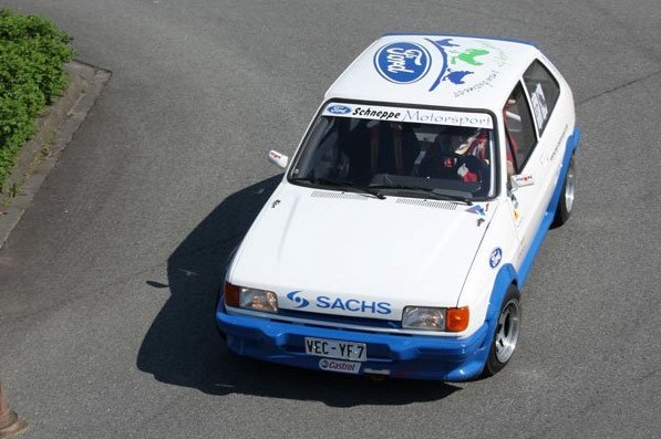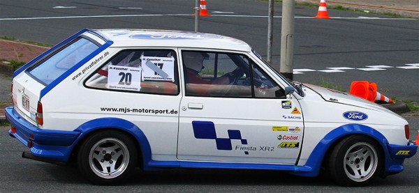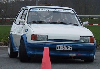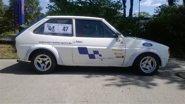 25.11.2009 - Unser Slalom-Fiesta XR2 Fiesta XR2, Clubslalom-Auto, früher auch Einsätze in der Slalom-DM, eingeschweißte Wiechers-Cromo 4-Leichtbau-Zelle, Slalom-Fahrwerk, 45er Weber-Doppel-Vergaser, dbilas-Ansaugbrücke, dbilas-Nockenwelle ..., ca. 2500 km gelaufen, K+N-Filter + Trichter, 5-Gang-Getriebe mit Schneckenrad-Sperre, kurze 4.11er Endübersetzung, Escort-Turbo-Kupplung, Cosworth-Katalysator, Aluräder 7 x 13 ET5 mit Michelin-Slicks, Feuerlöscher, RS-Lenkrad, guter Zustand, kein Rost, sehr gepflegt. Kühler und Brems-beläge vorn sind neu. Für die Clubslalomsportler: Der Wagen ist auf engen Kursen sehr sehr schnell, hat mit der Sperre eine super Traktion und geht in den unteren Gängen richtig ab !