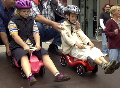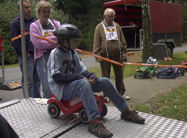 10.09.2006 - Bobbycar-Rennen in Dötlingen und Lohne Unser ältester Sohn Felix nahm am letzten Wochenende an zwei sehr schönen Bobbycar-Rennen teil. Am Samstag kam Felix im hübschen Ort Dötlingen bei Wildeshausen bis ins Finale und wurde letztendlich Zweiter. Beim sehr gut organisierten Sonntag-Rennen des AMC Lohne und des Musikhauses Hartz schaffte es der Sohnemann wieder ins Finale und fuhr nach einem packenden Rennen fair als Sieger ins Ziel. Bravo Felix und schönen Dank an die Veranstalter ! Die gesamte Familie drückte kräftig die Daumen. Felix´ Bilanz ist eindrucksvoll: 3 Starts, 2 Siege, 1 zweiter Platz Wir freuen uns über seinen Erfolg und noch mehr darüber, daß er die Rennen genießt, die Sache locker angeht und ohne Druck fährt. Er hat seinen Spaß, so soll es sein.