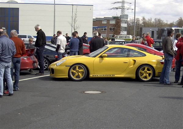 17.04.2006 - Osterslalom Lohne Im Motorpark lief heute der Clubslalom des AMC Lohne. Um den heimischen Club ein wenig zu unterstützen, hatte auch ich mich zu dieser Veranstaltung angemeldet. Der Slalom-Fiesta blieb wegen einiger notwendiger Reparaturen in der Garage, also nahm ich erstmals mit meinem Rallye-BMW an einem Slalom teil. Eingeschrieben hatte ich mich in der offenen Klasse 8 (über 1600 ccm). Nicht die beste Entscheidung, wie sich später herausstellen sollte. Mir fiel so richtig die Kinnlade herunter, als ich die weiteren Starter in der Klasse sah. Sechs Porsche GT3 und 911 Turbo, Mercedes 190 EVO, Käfer mit Typ 4-Motor aus dem VW-Porsche 914. Die Krönung: Ex-Formel 1- und Champ Car-Pilot Timo Glock gönnte sich einen Slalomstart und wählte sich dafür gleichfalls die Klasse 8 aus. Da hatte ich mit meinem sicher nicht schlechten, aber dennoch eher harmlosen BMW 318 iS nicht die Spur einer Chance. Kurz: Was für die Rallye gut ist, muß nicht zwingend auch beim Slalom taugen. Zur Platzierung in der Klasse: In dem bärenstarken Feld belegte ich unter 12 Startern nach dem ersten Wertungslauf Rang 6, nach Addition beider Läufe Rang 8, knapp eine vierzehntel Sekunde von Platz 6 entfernt. Nicht ganz so gut wie erhofft, aber Formel 1-Fahrer Timo Glock war hinter mir ! Der hatte leider eine Bordsteinkante "geküsst". Zu seiner Ehrenrettung: Nachmittags gab es einen Sonderlauf für Porsche-Fahrzeuge, wo er den gelben 911er bei seinem ersten Slalom zur Tagesbestzeit prügelte. Hut ab, starke Leistung ! Zum Gesamtklassement: Unter 42 Startern - davon 17 Porsche - belegte ich am Ende Gesamtplatz 18. Auf den nachfolgenden Bildern ist "meine" Klasse sowie ganz links auf Bild 2 Timo Glock zu sehen.