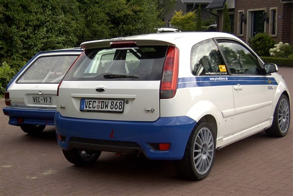 Die weitere Planung: Felix will nun auf dem Fahrersitz beim Clubslalom Fuß fassen. Im kommenden Jahr sind auch Einsätze im Rallyesport geplant. Hier wird er auf dem Beifahrersitz Platz nehmen und mich am Steuer des neuen Fiesta ST navigieren. Das Fernziel sind internationale Einsätze. Wir suchen daher noch händeringend ein paar Gönner, die uns behilflich sein können. 29.07.2009 - Ein paar Bilder Ich mußte heute die Garage aufräumen und habe die beiden Fiesta dazu rausgefahren. Die Gelegenheit habe ich für ein paar Schnappschüsse genutzt.