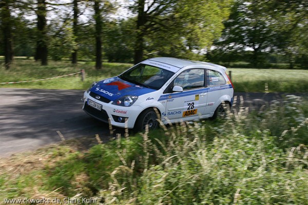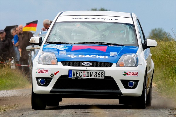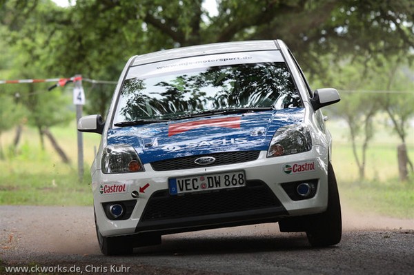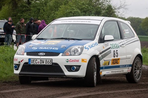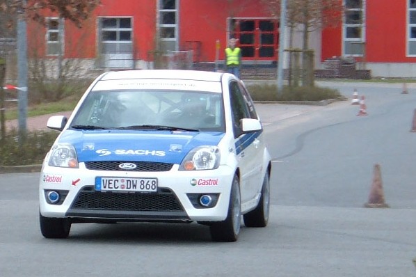 Zur Nachmittagsveranstaltung: Diesmal waren es 11 Teams in der Klasse. Wir holten letztendlich Platz 7. Im Gesamtklassement bedeutete das unter 33 Teilnehmern immerhin Platz 21. In den Tagen vor der Rallye hatte ich den Wagen gründlich durchgecheckt und besonders viel Zeit bei der Revision der Bremsanlage verbracht. Das hat sich gelohnt, der Wagen lief wieder einmal problemlos. Unsere Reifen waren allerdings bei dem Wetter viel zu weich, wir rutschten ziemlich herum, die Decken lösten sich in ihre Bestandteile auf. Kostet ja auch nichts ... . (Augenroll) 08.08.2012 - Aktuelles Aus dem erhofften Start bei der ADAC Rallye Deutschland im Rahmen der Deutschen Rallye Meisterschaft wird leider nichts. Es liessen sich hierfür keine Sponsoren finden. Wir werden nun am 19. August in Bremerhaven am traditionellen ADAC-Fischereihafen Rallye-Sprint teilnehmen. Wir haben uns zur Vormittags- und Nachmittagsveranstaltung angemeldet. Zur Rallye Deutschland, die in der Woche darauf stattfindet, werden Felix und ich nun als Zuschauer anreisen. 05.07.2012 - Sponsoren gesucht Wir möchten mit unserem Ford Fiesta ST die ADAC Rallye Deutschland fahren. Alles, was man dafür benötigt, haben wir. Der finanzielle Aufwand ist dennoch hoch. Wir bräuchten einen oder mehrere Förderer für die Übernahme des Nenngeldes und die Einschreibung in die Deutsche Rallye Meisterschaft. Bei Interesse bitte Mail an info(at)privatfahrer.de.
