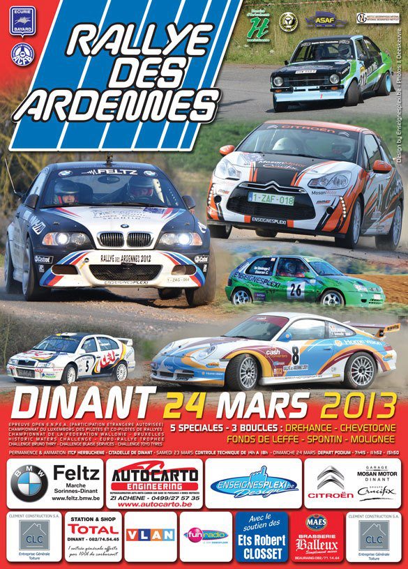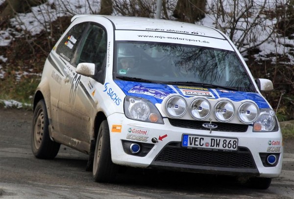 Am späten Samstagabend fing es in Dinant unerwartet an zu schneien. In Hotelnähe blieb der Schnee allerdings nicht liegen. So dachten wir, wir könnten die 15 recht flotten Wertungsprüfungen über 154,71 km mit unseren neuen Toyo Proxes R1R fahren. Auf der Fahrt zum Service am frühen Sonntagmorgen merkten Felix und ich allerdings gleich, dass wir auf Winterreifen wechseln müssen. In den höheren Lagen lag richtig viel Schnee. Zur Rallye selbst: Mit nun Barum-Winterreifen lief es dann für uns auf den rutschigen ersten Wertungsprüfungen zunächst recht gut. Da wir allerdings ohne Service fuhren, konnten wir nachmittags leider nicht nochmal Reifen wechseln. Der Zeitplan war zu knapp. Mit den Winterreifen war es später auf abgetrocknetem Asphalt nicht so toll zu fahren. Wir verloren Zeit. Aber es ging. Zwei WPs mussten wir ohne funktionsfähige Gegensprechanlage auskommen. Das war ziemlich kritisch. Felix schrie sich die Seele aus dem Leib, trotzdem konnte ich einzelne Passagen nicht verstehen. Nach erfolgter "Reparatur" in der Servicepause konnten wir dann den Funk der zu uns stets sehr freundlichen belgischen Streckenposten über die Helme mithören ... . In einer Kehre gab es noch eine leichte Kollision mit einem französischen Teilnehmer. Das hätte nicht sein müssen und ist ärgerlich. In der vorletzten Prüfung gelang es uns dann noch, mit Straßen-Winterreifen auf feuchter Piste unter noch 52 im Feld befindlichen Teams ganze 24 Fahrzeuge hinter uns zu lassen. Und das mit viel zu langen Getriebeübersetzungen vom Fiesta 1.3 und ohne Sperre. Unter 82 Teilnehmern der Divisionen 1, 2 und 3 belegten wir am Ende Platz 36. Das Ziel sahen 50 Teams. Wir wurden auf der Strecke von den rallyebegeisterten Fans frenetisch angefeuert. Hat richtig Spaß gemacht und tat mir persönlich richtig gut. Ein tolles Erlebnis! Ach ja: Thierry Neuville haben wir am Sonntagabend auch noch kennengelernt. Ist ein wirklich netter Typ. Danke nochmal an meinen erst 18-jährigen Co Felix, der im Auto nahezu fehlerfrei blieb und die anstrengende Fahrt ohne zu klagen mitmachte. 12.03.2013 - Rallye des Ardennes in Belgien Hierzu haben wir eine Nennung abgegeben: