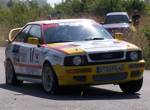 05.08.2006 - Holsten-Rallye Björn war heute beim "Holsten-Doppel" erstmals als Copilot von Peter Grelck am Start. Im bärenstarken Audi Coupe S2 waren Grelck / Riesmeyer sehr erfolgreich. Bei beiden Rallyes sprang jeweils ein mehr als respektabler siebter Gesamtplatz heraus. In der Addition beider Rallyes gab es dann einen Pokal für den hervorragenden vierten Gesamtplatz. Glückwunsch ! Danke an Matthias für das Bild.