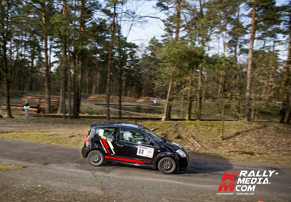 Zur Rallye: Sehr zu empfehlen. Sehr gut organisiert, tolle Prüfungen. Besonders gut gefallen hat uns der Rundkurs durch den Wald, WP3 und WP7. Hier zeigte sich, dass es auch im Flachland hoch und runter gehen kann. Zwar hatten wir dort im ersten Durchgang einen ziemlich heftigen Dreher, da ich meinte, die Kuppe voll nehmen zu können, die sofort folgende rechts 2 aber trotzdem zu schaffen. Ging dann aber doch nicht … . Trotzdem: Klasse Prüfung, Bravo! Für mich etwas gewöhnungsbedürftig, aber ok waren die Rundkurse, bei denen man stets den Rückspiegel im Auge haben musste, um schnellere Teams nicht zu behindern. Das hat aber ganz gut geklappt, auch wenn wir durchs Platzmachen mehrmals ein paar Sekunden verloren.