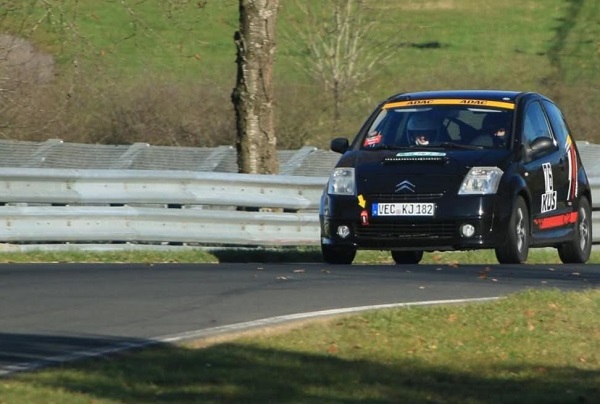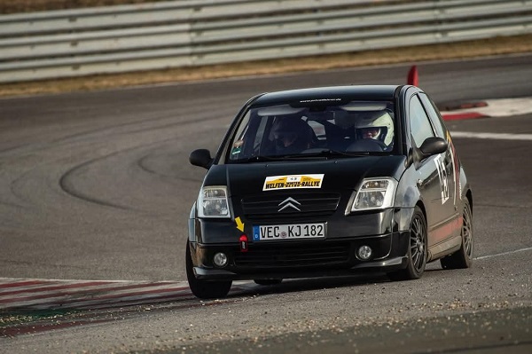 Am Freitagabend sollten bereits die ersten beiden Prüfungen gefahren werden. Mir ging es durch den Infekt extrem mies. Also fuhren wir in der Pause vor dem Start zu einer Apotheke. Dort hat man mir allerhand "Dopingmittel" mitgegeben, damit ich kurzfristig wieder in die Puschen komme. Zum Start der ersten Prüfung bei Dunkelheit ging es mir dann tatsächlich gar nicht mal so schlecht, es konnte also losgehen. Wir wollten uns ja wieder am Lenkrad abwechseln, den Freitagabend sollte Felix das Lenkrad drehen. Und das klappte auf WP1 schon mal richtig gut. Zwar ging es teilweise ordentlich bergauf, sodass dem kleinen C2 die Puste ausging, im Ziel hatten wir tatsächlich aber ein paar Teams hinter uns gelassen, die Wertungsprüfung machte auch Spaß. Juhuu. WP2 wurde nach einem etwas heftigeren Unfall dann leider abgebrochen. Wir bekamen eine errechnete Zeit. Nach der ersten Etappe lagen wir bereits auf Platz 61. Die WP3 am Samstagmorgen wollte ich dann fahren. Pustekuchen, leider wieder Abbruch wegen eines Unfalls. Okay, dann zur WP4. Diese Prüfung war sehr sehr schnell, alles 4er und 5er Kurven, was mir eigentlich gut liegt. Mit meiner Fahrt waren wir beide auch zufrieden. Blöd nur, dass es viel berghoch ging, denn dafür hat der C2 zu wenig Leistung. In WP5 durfte Felix wieder dran. Etwa fünf Kilometer Geballere durch ein Waldstück, dann rauf auf die Nürburgring-Nordschleife. Allerdings diese in entgegengesetzer Richtung! Felix fuhr schnell und gleichzeitig vorsichtig, denn es war stellenweise super rutschig. Der von unserem lieben Bekannten Sebastian zur Verfügung gestellte Aufschrieb passte und wir kamen gut durch die Prüfung. So viel Glück hatte nicht jeder, es gab auch hier verbogenes Blech.