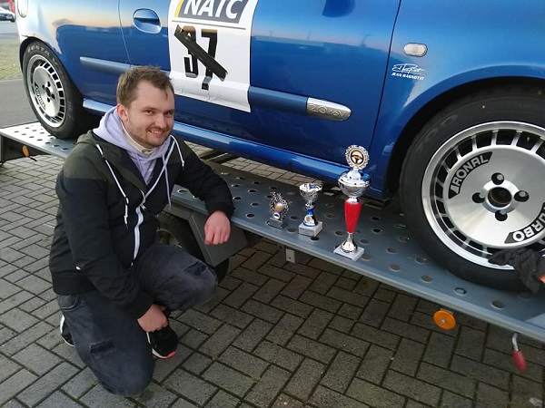 Felix am Lenkrad bei der Fahrt zum Klassensieg. Zwei weitere Aufnahmen findet man in der Galerie. Danke an Peter Stech.