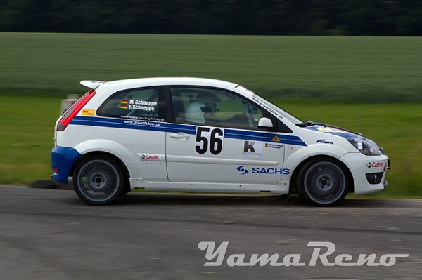 27.12.2012 - "Schneppe-Tuning" Den Fiesta ST hab ich nun seit etwa vier Jahren. Der Rallye-Ford ist ein gutes Auto, die Motorleistung war aber bisher ziemlich enttäuschend. Zwei Leistungsmessungen vor und nach der Motorrevision vor zwei Jahren zeigten jeweils mickrige 139 PS an. Oha ... . Besonders in Rundkursen habe ich dieses Jahr gemerkt, daß wir vom Motor her überhaupt nicht mithalten können. Ich habe im Herbst nun ein paar Sachen am Fiesta geändert. Das ließ sich alles selbst in der Garage nach Feierabend und am Wochenende erledigen und hat nicht viel gekostet. Eine erste Probefahrt zeigte kürzlich, daß der Wagen nun etwas besser vorwärts geht. Ich wollte es nun genau wissen. Drum sind Felix und ich vorhin zum ADAC Prüfzentrum nach Delmenhorst gefahren. Die dort durchgeführte Leistungs-messung bestätigte das gute Gefühl. Es wurde nun 165,8 PS ermittelt. Damit bin ich sehr zufrieden. 16.10.2012 - Vizemeister im Nordwestdeutschen Clubsport-Slalom-Cup 2012 Die Endwertung in der Klasse 3a: 1 Friedhelm Tost - VW Polo - 766,22 Punkte 2 Michael Schneppe - Ford Fiesta - 757,73 Punkte 3 Marcel Obermeyer - VW Golf - 757,31 Punkte 4 Karsten Gottschalk - VW Polo - 752,53 Punkte 5 Felix Schneppe - Ford Fiesta - 703,70 Punkte 6 Helmut Nelson - Citroen AX - 687,15 Punkte 7 Frederik Tost - VW Polo - 674,37 Punkte 8 Matthias Grünefeld - VW Polo - 614,86 Punkte 9 Andreas Anton - Trabant - 572,74 Punkte 10 Thomas Mazantke - Rover - 478,67 Punkte 11 Mario Hüffmeier - VW Golf - 412,52 Punkte 12 Oliver Schumacher - VW Polo - 370,90 Punkte 13 Daniel Böhmann - Peugeot 205 - 370,57 Punkte 14 Wilfried Böhmann - Peugeot 205 - 369,85 Punkte 15 Thomas Waebs - Ford Fiesta - 98,51 Punkte 15.10.2012 - Grönegau-Slalom AC Melle / Automobilslalom AMC Hoyel Toller Slalom, top organisiert - aber falsche Reifenentscheidung vor dem Rennen Heute ist ÄRGERN angesagt. Der Tag hätte so gut laufen können. Ich war gut drauf, hatte Feuer ohne Ende. Und dann entscheide ich vor dem Start, dass wir die Michelin Trockenreifen runter schmeißen und dafür Toyo Proxes Sportreifen an den Fiesta packen. So ein Unsinn! Die Straßen waren nass, als Felix, Tim und ich zum Segelflugplatz Gerden nach Melle fuhren. Dort angekommen, sah der Himmel bedrohlich düster aus. "Da kommt noch was runter." Nee, tat es nicht. Das hatten die Wetterberichte auch gezeigt. Als ich dann zum Probelauf startete, wusste ich nach 5 Metern Fahrt, dass die Entscheidung totaler Stuss war. Absolut null Grip, zumindest am Anfang betonharte Pneus mit reichlich Pickup vom letzten Einsatz in Bremerhaven. Nach 15 Sekunden Fahrt drehte ich mich deshalb auch schon in die Wiese. Totaler Eiertanz, totale Katastrophe. Ich konnte nur noch vorsichtig fahren, attackieren ging nicht. So blieben für mich nur die nicht ganz so guten Plätze 16 (Melle) und 12 (Hoyel) unter jeweils 23 Teilnehmern in der Klasse 3a. Seltsamerweise waren die Platzierungen im Gesamtklassement mit dem Plätzen 39 und 36 bei 104 Startern gar nicht mal so schlecht.