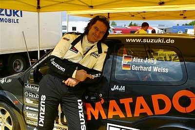 Ebenfalls am Start: "Big Brother" Alex Jolig im von Suzuki Deutschland zur Verfügung gestellten Cup-Ignis. Der Promi lockte die Kamerateams an und die Mädels von uns weg ... .