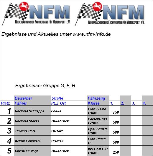 Clubsport-Slalom Niedersächsische Meisterschaft: ............ Felix: Platz 8 ADAC Weser-Ems-Pokal - Gruppe 3: ..... Felix: Platz 1, Michael: Platz 3 NWD-Cup - Klasse 3b: ............................ Felix: Platz 1, Michael: Platz 3