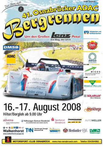 07.11.2008 - Saisonabschluss Sieger ADAC Weser-Ems Clubslalom-Pokal Das Endergebnis 2008 liegt nun vor. In der Pokalwertung der Gruppe 2 belege ich den ersten Platz vor dem netten Fahrerkollegen Dieter Wittke vom NAC Bremen. 05.10.2008 - Slalom AC Melle + AMC Hoyel Sieger Nordwestdeutscher Slalom-Cup 2008 Brrr, war das kalt am gestrigen Sonntag auf dem Segelflugplatz in Melle. Bei wirklich ungemütlichem Herbstwetter mit Dauerregen und eisigem Wind fanden die letzten beiden Meisterschaftsläufe der Saison 2008 statt. Die Mitglieder der veranstaltenden Clubs AC Melle und AMC Hoyel hatten unter solchen Bedingungen einen richtig schweren Job zu erledigen. Danke für die Mühe ! Angenehmer als draußen war es auf jedem Fall im beheizten Auto. Ich muss mich im gemütlichen BMW anscheinend ziemlich wohl gefühlt haben, denn letztendlich konnte ich besser abschneiden als erwartet. Bei der Veranstaltung des AC Melle belegte ich unter 6 Startern in der Klasse Platz 2, beim Slalom des AMC Hoyel unter wiederum 6 Teilnehmern Platz 4. Damit konnte ich zufrieden sein, schließlich hatte ich an meinem Gruppe G-Rallyeauto nur alte Straßenreifen montiert, die nicht gerade ein "Gripwunder" sind. Die beiden Slaloms waren gleichzeitig die Finalläufe zum Nordwestdeutschen Slalom-Cup 2008, der Serie von Heinz Jabs und Edwin Speckmann vom NAC Bremen. Mit meinen regelmäßigen Starts konnte ich die Klasse 2b dann doch für mich entscheiden. Zweiter wurde Honda-Pilot Dierk Maahs aus Kiel. 17.08.2008 - 41. Osnabrücker ADAC Bergrennen Seit über 20 Jahren wollte ich schon mitfahren, kurz vor der Rente (Naja) war es nun so weit. Ich bin tatsächlich mitgefahren und das war auch gut so. Die beiden Veranstaltungstage - Samstag Training, Sonntag Rennen - haben mir gut gefallen. Das Fahren hat mir viel Spaß gemacht, die vielen Plaudereien habe ich genossen, das ganze Drumherum war gut. Das Osnabrücker Bergrennen ist ein Riesen-Volksfest, fast schon eine Kultveranstaltung. Besuch bekamen Felix (der mich begleitete) und ich vor Ort auch von Freunden und Bekannten aus der Rallye- und Slalomszene. Das hat mir sehr gefallen. Toll war auch, neue Leute kennen zu lernen. Die Stimmung im Fahrerlager war sehr gut, von den Fahrerkollegen Jürgen und Axel bekam ich sogar wertvolle Tipps zur Verbesserung der Zeiten. Schönen Dank !