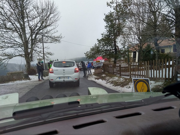 Am Samstagmorgen verließen wir dann bereits gegen 06:00 Uhr das Wohnhaus, um die am Vortag besichtigten Prüfungen ein zweites Mal anzuschauen und um auch die Außenprüfung WP3+6 zu inspizieren. Das erste Fahrzeug startete dann um 11:01 Uhr zur Rallye, wir um 12:20 Uhr. Die erste Prüfung sollte Felix fahren. Er machte seine Sache sehr gut, ich kam mit meinem 10 DIN A4-Seiten Aufschrieb ein paarmal leicht durcheinander, das ging aber noch. Teile der Strecke waren nun in einem übelsten Zustand, die vorne gestarteten Turbo-Allradler hatten dutzende fette Steine aus der Straße gezogen. Felix fuhr an diesen Stellen langsam und vorsichtig, um das kleine Serienauto und auch die Reifen nicht zu zerstören, ansonsten schon im Rallyetempo. Insgesamt kamen wir gut durch und auch die Fahrzeit war gut. Auf WP2 war ich dann dran. Meine Fahrt war