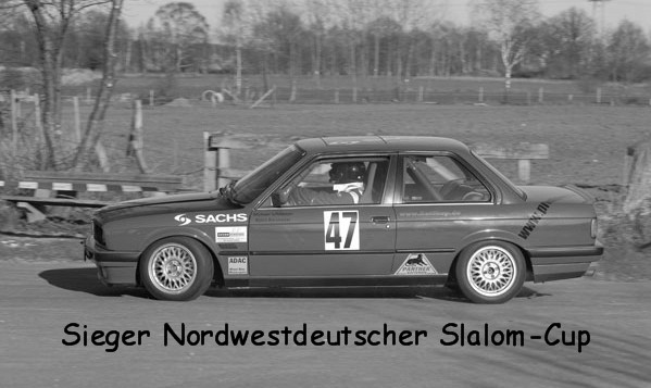 in der Automobil-Slalom-Meisterschaft 2004 Heute habe ich die Ergebnisliste der Automobil-Slalom-Meisterschaft des ADAC Weser-Ems erhalten. Die Saison habe ich mit einem vierten Platz abgeschlossen. Damit bin ich zufrieden. Auch zum Rallye-BMW gibt es Neuigkeiten. Dieser hat mittlerweile einen Ölwannen-Schutz aus hochfestem Aluminium erhalten. Danke an Andreas Smyrek von der Firma SMW. Heute wurde auch der noch benötigte Feuerlöscher samt stabiler Halterungen und Schnellverschlüsse geliefert. Ich werde ihn in Kürze einbauen; damit wäre der 3er dann endlich startbereit. Bei dieser Gelegenheit noch vielen Dank an Christian Strohkirch, der mir schon so manches Mal geholfen hat, wenn irgendetwas bei der Überarbeitung der Homepage nicht geklappt hat. 21.09.2004 - Mein Kumpel Björn Riesmeyer Nachfolgend ein Bild von Björn und dessen Gruppe G-Peugeot 205, aufgenommen beim Flugplatzslalom in Ahlhorn. Björn ist ein motorsportlicher Allrounder. Er ist schon Slalom, Rallye, Rallyesprint, Bergrennen, sowie auch Rundstreckenrennen (Bördesprint im Motopark Oschersleben) gefahren. Zudem war er auch schon als Copilot im Rallyeauto aktiv, zuletzt bei mir. Björn ist mindestens so begeistert von Autos und Motorsport wie ich, ist auch schon unzählige Runden auf der Nürburgring-Nordschleife gefahren. Er ist ein schneller, zuverlässiger und umsichtiger Fahrer, an seinen Autos ist nie etwas kaputt. Seit geraumer Zeit bastelt Björn an einem Youngtimer-Golf I GTi Gruppe 1, welchen er gerne bei Deutschlands Top-Rallye, der Rallye Köln Ahrweiler, sowie auch beim 500 km-Rennen auf dem Nürburgring einsetzen möchte. Der marsrote VW Golf I GTI im Originallook gehörte früher mir, Björn restauriert das gute Stück nun komplett. Sobald das Auto einsatzbereit ist, dürfte sich Björns eindrucksvolle Pokalsammlung (er war bereits dreimal Vizemeister der Slalommeisterschaft des ADAC Weser-Ems) weiter vergrößern. 03.08.2004 - Neues vom BMW Feinschliff: Am Gruppe G-BMW 318 iS konnte ich in der letzten Zeit einige Änderungen vornehmen. Das Auto hat nun neue SACHS-Stoßdämpfer, eine neue und extra starke Panther-Batterie sowie eine komplett neue Auspuffanlage erhalten. Zudem wurde der Tripmaster, der die Arbeit des Beifahrers erleichtern soll, dank einer neuen Eigenbau-Halterung nun direkt am Überrollkäfig befestigt. Dadurch ist dieses Instrument besser zu bedienen. 30.05.2004 - 2x Flugplatzslalom Nicht so gut lief es bei den beiden Veranstaltungen des AMC Diepholz. Beim 35. ADAC-Flugplatzslalom gab es im 1. Wertungslauf einen Verschalter, im 2. Lauf drehte ich mich bei hoher Geschwindigkeit und fuhr eine Pylone um (3 Strafsekunden), so daß ich mit Platz 9 von 12 Startern in der Gruppe H bis 1600 ccm noch gut bedient war. Beim 36. ADAC-Flugplatzslalom hatte ich mit gesundheitlichen Problemen zu kämpfen. Auf der superschnellen Strecke gelang es mir nicht, einen guten Rhythmus zu finden. So blieb nur Platz 12 von 14 Startern, viel Frust und der Vorsatz, beim nächsten Start alles besser zu machen. 20.05.2004 - Himmelfahrt-Slalom Die sehr gute Veranstaltung des MSC Oldenburg und des AC Bramsche meinte es gut mit mir. Dank des problemlos laufenden Ford Fiesta XR2 gab es einen Pokal für den Klassensieg. Danke an die Veranstalter, hat viel Spaß gemacht ! 01.05.2004 - Saisonstart Zwei tolle Slalom-Veranstaltungen wurden bisher gefahren. Beim sehr gelungenen Osterslalom des AMC Lohne gab es im Fiesta einen Pokal für den Klassensieg. Nicht ganz so gut war die Platzierung beim Start zur Honda Slalom Challenge in Göttingen. Hier waren doch einige Slalomspezialisten am Lenkrad des 203 PS starken und sehr gut vorbereiteten Honda Civic Type R besser unterwegs. Macht nichts, die Fahrt in einem so schnellen Auto habe ich trotzdem sehr genossen. 14.03.04 - Und so jetzt ... 15.02.2004 - So sieht der 318 iS jetzt aus
