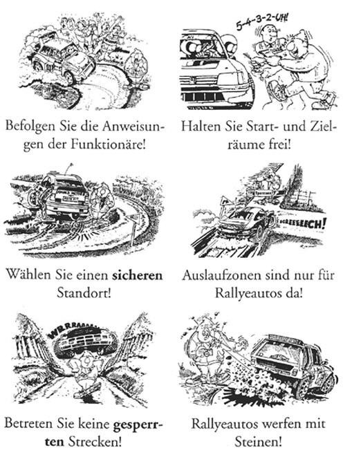 30.05.2005 - Tipps für Rallye-Zuschauer Ende 1986 erstmals gesehen, bei Rallyecrack wiederentdeckt. Ich finde die urigen Zeichnungen des plumpen Fans toll und lehrreich !